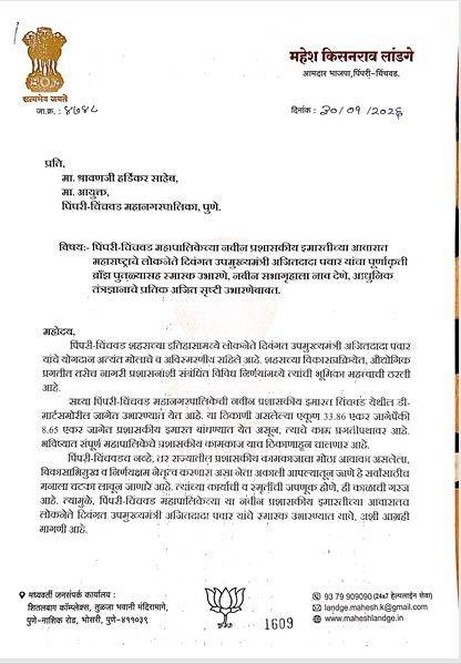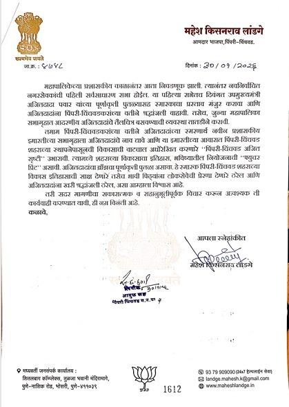 याबाबत आमदार लांडगे यांनी नमूद केलं आहे की, "दिवंगत अजितदादा पवार यांनी उपमुख्यमंत्री, अर्थमंत्री म्हणून महाराष्ट्राच्या सर्वांगीण विकासाला गती दिली. पायाभूत सुविधा, नागरी सेवा, प्रशासकीय निर्णयक्षमता आणि विकासाभिमुख धोरणांमुळे राज्याला वेगळी ओळख मिळाली. असे नेतृत्व अकाली काळाच्या पडद्याआड जाणे ही महाराष्ट्राची मोठी हानी असून, त्यांच्या कार्याची जपणूक होणे ही काळाची गरज आहे. त्यामुळे नवनिर्वाचित नगरसेवकांच्या पहिल्याच सर्वसाधारण सभेत अजितदादांच्या स्मारकाचा प्रस्ताव मंजूर करून पिंपरी-चिंचवडकरांच्या वतीने श्रद्धांजली वाहण्यात यावी, यासाठी आम्ही आग्रही आहोत." तत्पूर्वी जुन्या महापालिका सभागृहात अजितदादांचे तैलचित्र तातडीने बसवण्यात यावे, अशी सूचना प्रशासनाला केली आहे.