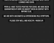 जॉन अब्राहमने सोमवारी इन्स्टाग्रामवर स्टोरीच्या माध्यमातून चाहत्यांना याची माहिती दिली. त्याने म्हटलं की, कोरोनाची लागण झाली असून रिपोर्ट पॉझिटिव्ह आला आहे. त्याच्यासह पत्नीसुद्धा कोरोना पॉझिटिव्ह आहे. तीन दिवसांपूर्वी एका व्यक्तीच्या संपर्कात आलो होते. संबंधित व्यक्तीला कोरोना झाल्याचं नंतर समजलं. तेव्हा आम्ही चाचणी केली आणि त्यात दोघांची टेस्ट पॉझिटिव्ह आली आहे. आम्ही सध्या घरीच क्वारंटाइन असून कोणाच्याही संपर्कात नाही. दोघांनीही लस घेतली होती, सध्या सौम्य लक्षणे असून तुम्ही काळजी घ्या आणि मास्क घाला असंही आवाहन जॉन अब्राहमने केलं आहे.