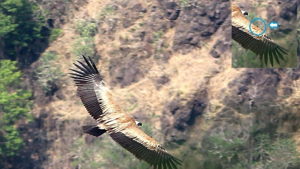 संतोष चाळके यांनी या गिधाडाचा फोटो काढत पक्षी तज्ज्ञ रोहन भाटे यांना दिला आहे. या पक्षाचे इंग्रजी नाव ग्रिफॉन वलचर असं आहे. या गिधाडाच्या उजव्या पंखावर नारंगी रंगाचे टॅग लावण्यात आल्याचं समोर आलंय. त्यामुळे कोणत्यातरी अभ्यासकाने स्थलांतराचा शास्त्रीय अभ्यास करण्यासाठी हे केलं असावं असा अंदाज बांधण्यात येतोय. याबद्दलची माहिती गिधाडांवर अभ्यास करणाऱ्या संधोधक आणि अभ्यासकांना देण्यात आलेली आहे.