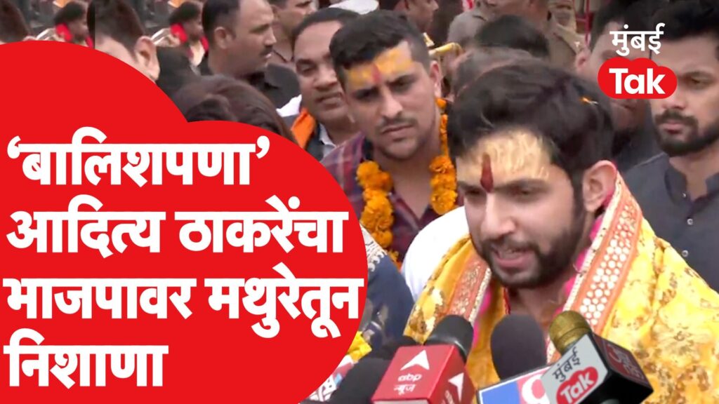 आमदार आदित्य ठाकरे यांनी मथुरेत श्रीकृष्णाचं दर्शन घेतलं. यावेळी रश्मी ठाकरेही उपस्थित होत्या. यावेळी पत्रकारांशी बोलताना आदित्य ठाकरेंनी भाजपावर निशाणा साधला. MLA Aditya Thackeray visited Lord Krishna in Mathura. Rashmi Thackeray was also present on this occasion. Aditya Thackeray while talking to the journalists targeted the BJP.