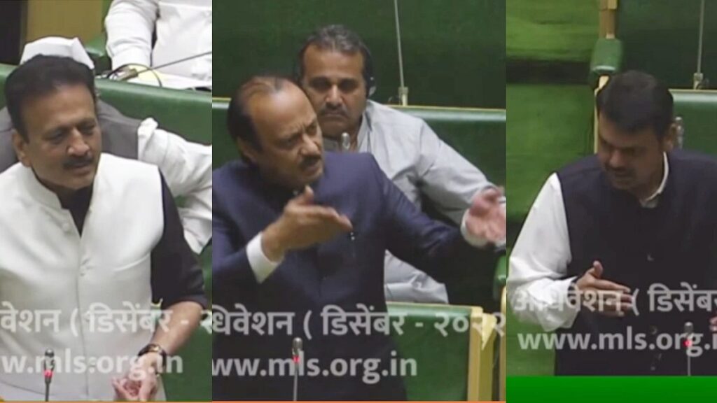 नागपुरात थंडी असली, तर हिवाळी अधिवेशनामुळे राजकीय वातावरण चांगलंच तापलेलं आहे. गेल्या दोन दिवसांपासून सत्ताधारी आणि विरोधक विविध मुद्द्यावरून सभागृहांमध्ये समोरासमोर येत आहे. विरोधी पक्षनेते अजित पवार हे सातत्यानं सरकारला घेरताना दिसत असून, सभागृहात मंत्री उपस्थित नसल्यानं अजित पवार चांगलेच संतापले. शेवटी देवेंद्र फडणवीसांना मध्यस्थी करावी लागली.