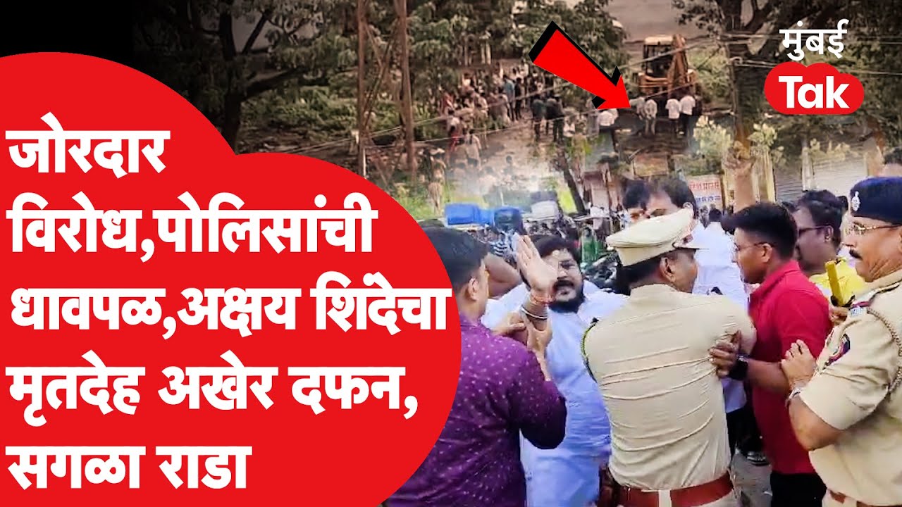 Akshay Shinde : बदलापूर प्रकरणातील आरोपी अक्षय शिंदेंचा मृतदेह अखेर उल्हासनगरातील स्मशानभूमीत दफन करण्यात आला. स्थानिक नागरिक आणि कार्यकर्त्यांनी विरोध केला, पण अखेर मोठ्या पोलीस बंदोबस्तात दफन करण्यात आले.