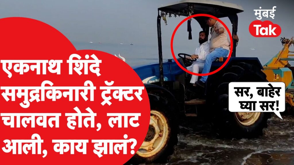 एकनाथ शिंदे यांनी मुंबईत समुद्रकिनारी ट्रॅक्टर चालवला, लाट आली, तेव्हा काय झालं?