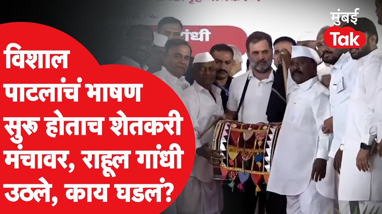 राहुल गांधी महाराष्ट्र दौर्यावर आले असताना, विशाल पाटील यांच्या भाषणादरम्यान एक शेतकरी मंचावर भेटला.