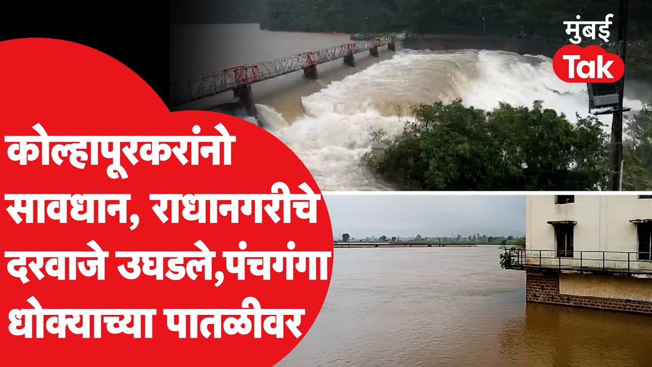 कोल्हापूर जिल्ह्यात मुसळधार पाऊस झाल्यामुळे पंचगंगा नदीने धोका पातळी गाठली आहे. राधानगरी धरणातून विसर्ग सुरु असल्यामुळे नदीकाठच्या गावातील नागरिकांचे स्थलांतरण सुरू आहे. 81 बंधारे पाण्याखाली आहेत आणि 10 राज्य मार्गांसह 68 मार्गांवर पाणी आल्यामुळे वाहतूक बंद झाली आहे. नागरिकांनी सतर्क रहावे आणि अधिकृत सूचनांचे पालन करावे. (heavy rain in kolhapur four gates of the radhanagari dam were opened people on the banks of the river are cautioned)