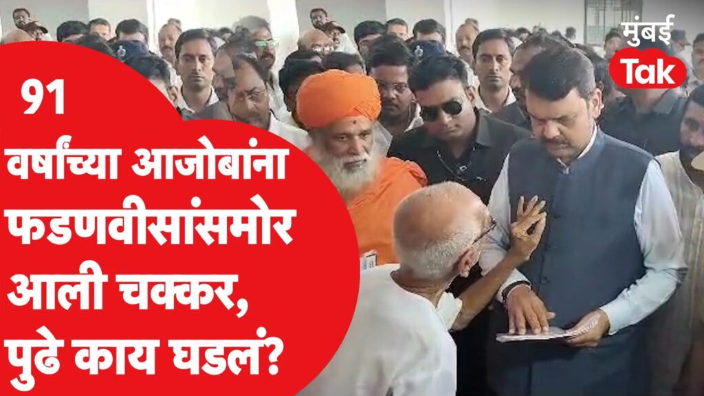 फडणवीसांशी बोलताना ९१ वर्षांचे आजोबा खाली कोसळले