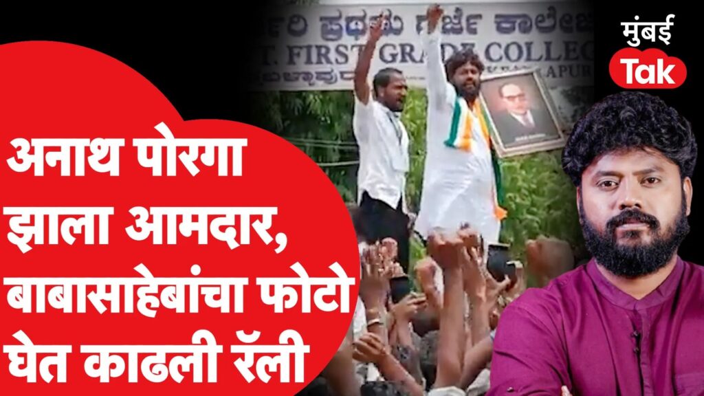कर्नाटकच्या निवडणुकीत काँग्रेसच्या तरुण आमदाराने कर्नाटकच्या आरोग्य मंत्र्याचा पराभव केला. या पराभवानंतर विजयी रॅलीमध्ये या आमदाराने आंबेडकरांचा फोटो हातात घेतला होता.