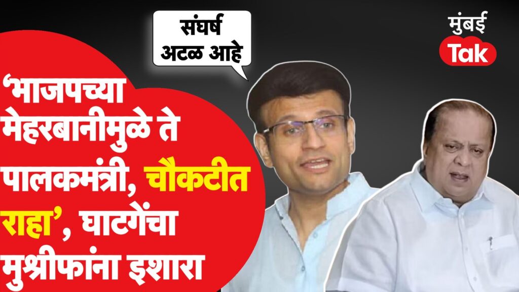 ‘चौकटीत राहा’, समरजित घाटगेंचा मुश्रीफांना इशारामुंबई तक • 06:56 AM • 09 Oct 2023हसन मुश्रीफ यांना कोल्हापूरचं पालकमंत्री पद देण्यात आलं आहे. त्यानंतर आता भाजपचे नेते समरजित घाटगे यांनी मुश्रीफांना इशारा दिला आहे. ADVERTISEMENTमुंबई तक09 Oct 2023 (अपडेटेड: 09 Oct 2023, 06:56 AM) ‘चौकटीत राहा’, समरजित घाटगेंचा मुश्रीफांना इशारा