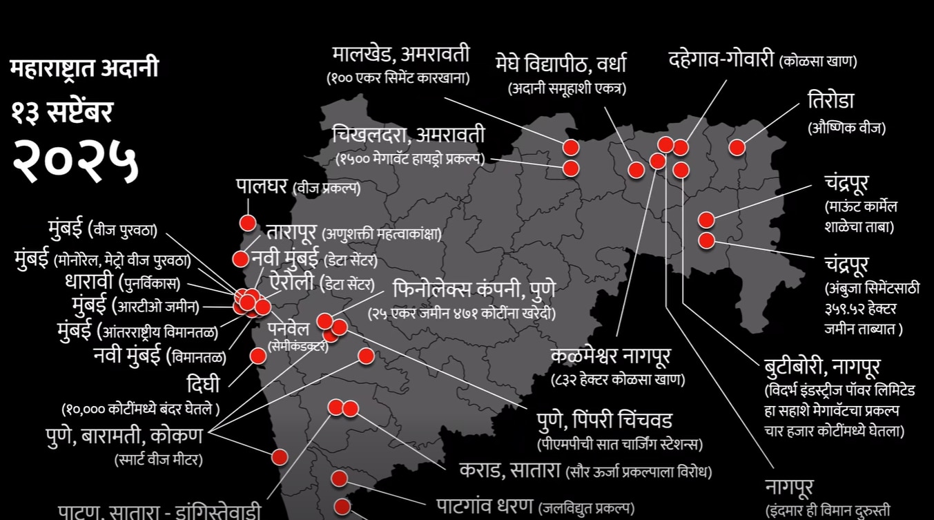 यावेळी राज ठाकरे सभेत व्हिडिओच्या माध्यमातून थेट अदानींचं साम्राज्यच दाखवलं. सुरुवातीला त्यांनी देशभरात अदानी ग्रुपचे किती प्रोजेक्ट आहे हे दाखवलं आणि त्यानंतर महाराष्ट्र आणि मुंबई महानगर क्षेत्रात (MMR) अदानी ग्रुपचे नेमके किती प्रोजेक्ट सुरू आहेत याचं प्रझेंटेशनच दाखवलं. त्यानंतर राज ठाकरेंनी भाजपवर अक्षरश: टिकेची झोड उठवली.