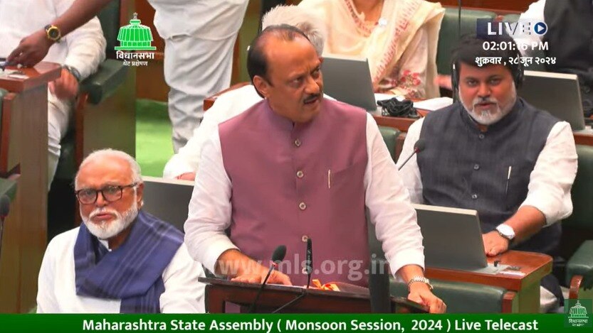 Maharashtra Budget 2024 Ajit Pawar: मुंबई: विधानसभा निवडणुकींच्या तोंडावर राज्यातील शिंदे सरकारमधील अर्थमंत्री अजित पवार यांनी अंतरिम अर्थसंकल्प सादर करताना एका मोठ्या योजनेची घोषणा केली आहे. जी सरकारसाठी गेमचेंजर ठरू शकते. ही योजना म्हणजे मु्ख्यमंत्री माझी लाडकी बहीण योजना. ज्यामध्ये महिलांना दरमहा १५०० रुपये मिळणार आहेत. (maharashtra budget 2024 finance minister ajit pawar announced mukhamantri majhi ladki bahin yojana government will give rs 1500 per month to women)