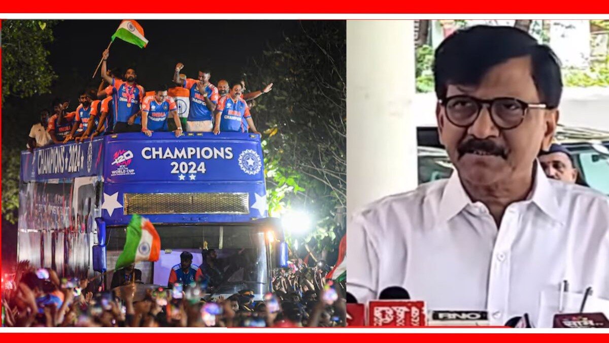 Sanjay Raut On Team India Victory Parade Bus : T20 विश्वचषक जिंकणाऱ्या भारतीय क्रिकेट संघाची गुरूवारी मरीन ड्राइव्ह ते वानखेडे अशी व्हिक्ट्री परेड काढण्यात आली. आता या मिरवणुकीवरून राजकीय वर्तुळात टीका-टिप्पण्या सुरू झाल्या आहेत. व्हिक्ट्री परेडसाठी "बेस्टच्या ताफ्यात अशी बस असतानाही गुजरातहून बस का आणली?" असा सवाल करत संजय राऊतांनी संताप व्यक्त केला आहे. (shivsena ubt sanjay raut on team india open deck bus for victory parade which brought from gujrat)
