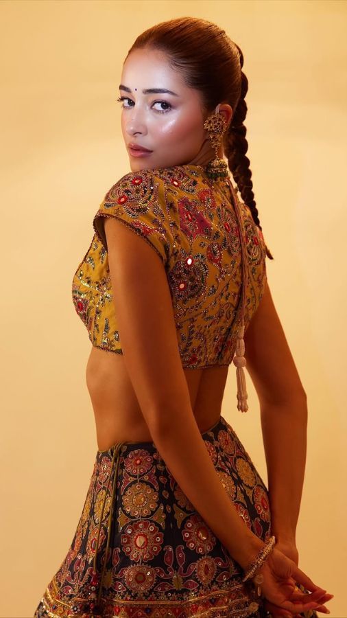 या आउटफिटवर अनन्याने छान स्लीक वेणी घातली होती, ज्यामुळे तिच्या लूकला अनोखा टक मिळाला.